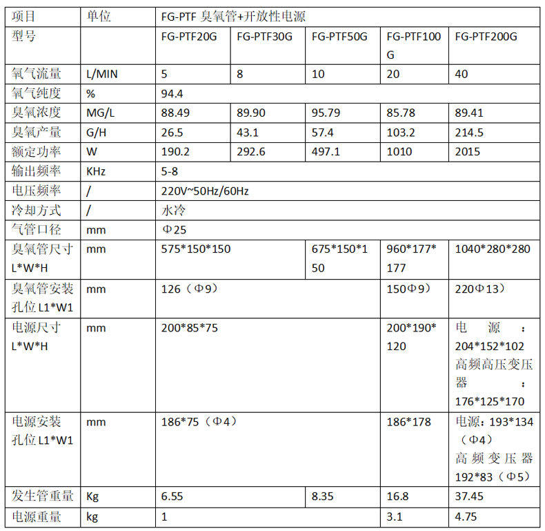FG-PTF 臭氧管+開(kāi)放性電源 |