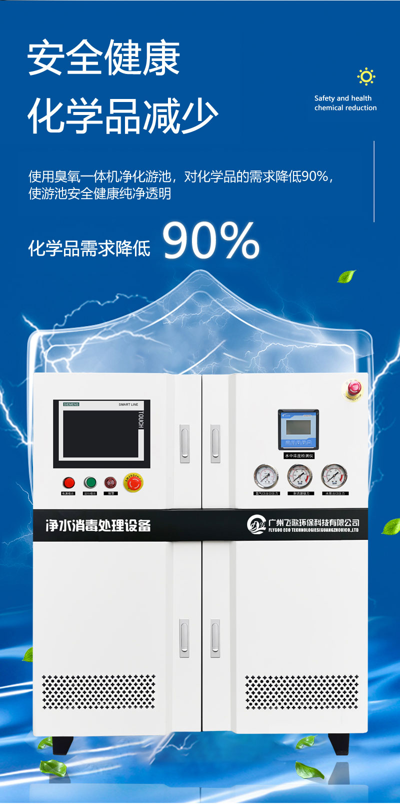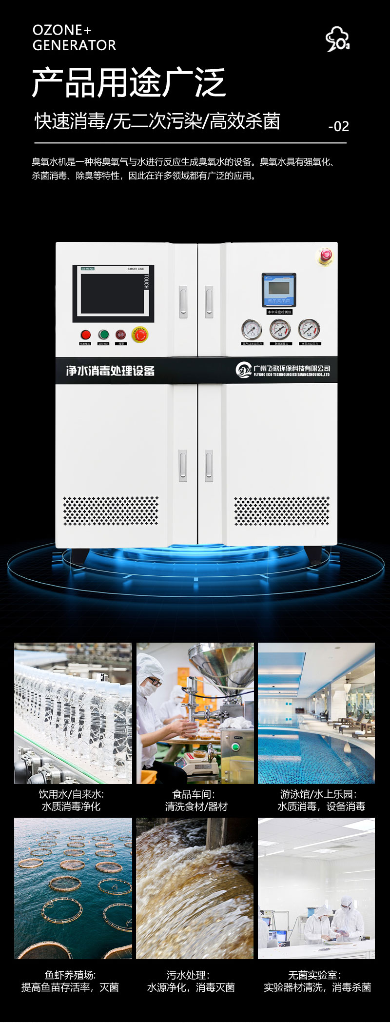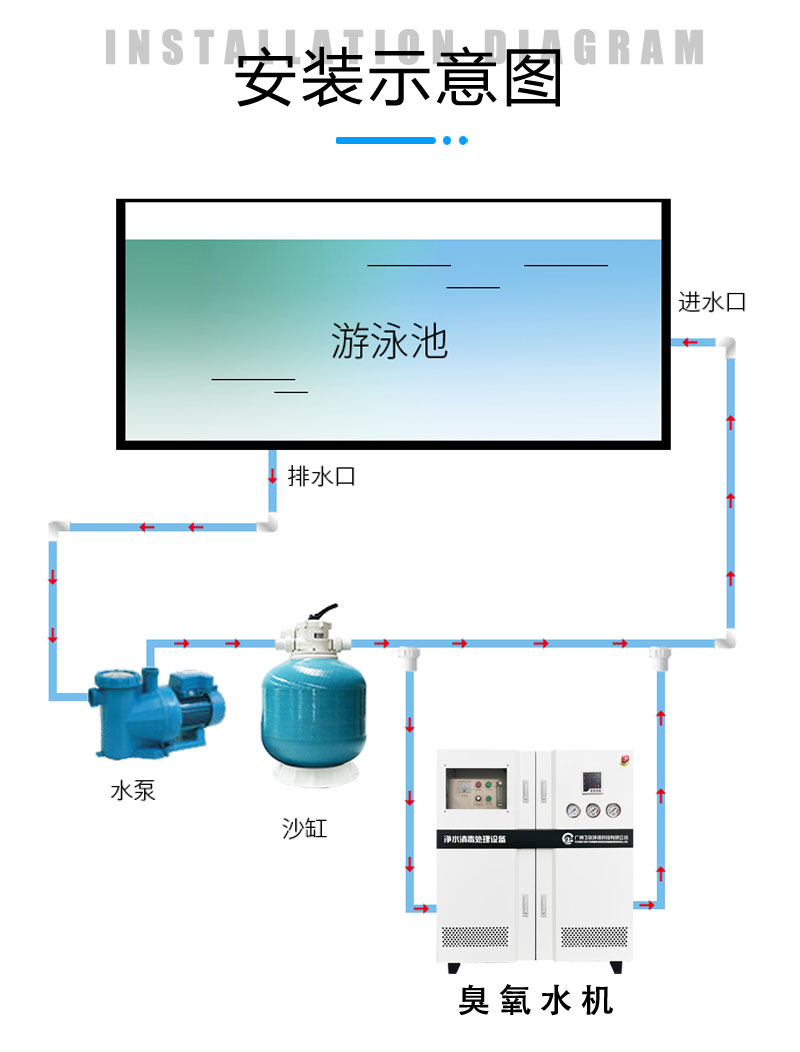 5. 泳池、庫(kù)房、小區(qū)供水等用臭氧水殺菌消毒;