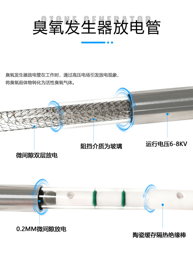 5. 采用微間隙放電設(shè)計(jì),臭氧濃度90mg/l,水中實(shí)測(cè)臭氧濃度>2ppm;