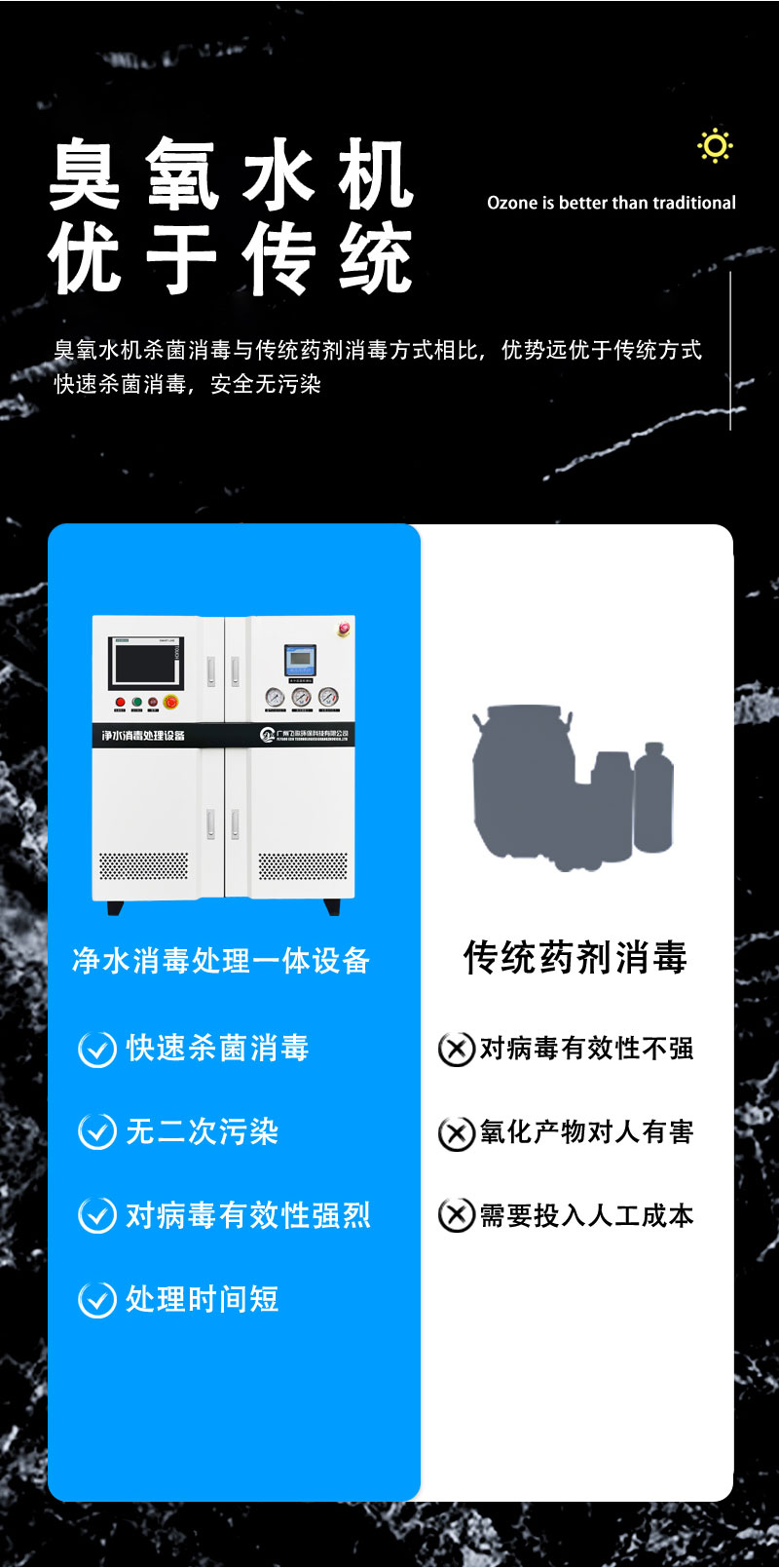4. 設(shè)備配備專用防回水筒,防止水回流到臭氧系統(tǒng)管道里導(dǎo)致機(jī)器損壞;
