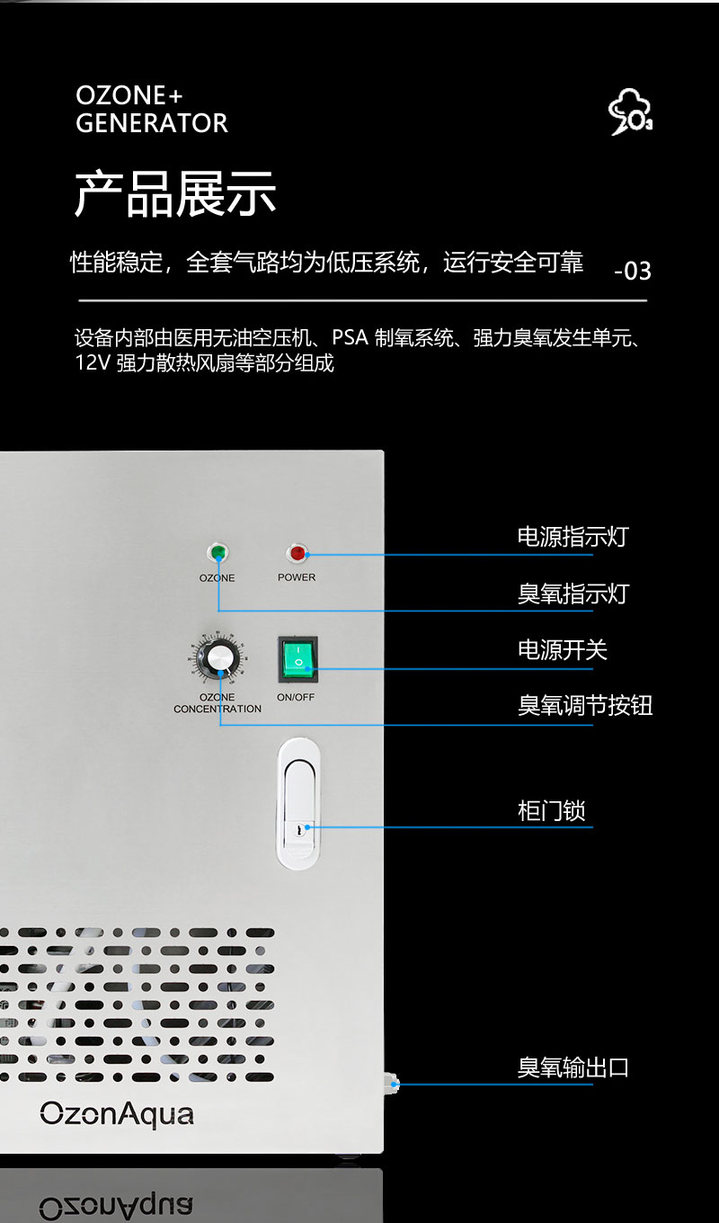 ◆不銹鋼噴漆,耐腐材質(zhì)使用壽命長(zhǎng)、內(nèi)置制氧系統(tǒng)、強(qiáng)力散熱風(fēng)扇提高產(chǎn)品使用壽命