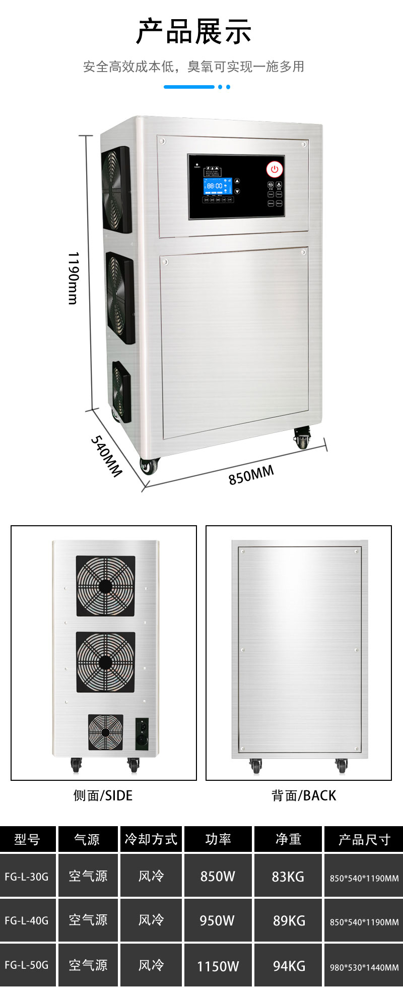 ◆線路板核心電子元件采用進(jìn)口芯片,如:IGBT1C等核心芯片,整塊線路自主研發(fā),自主編寫程序,具有過流、過溫、過壓的保護(hù)。完美的配合飛歌設(shè)計(jì)的臭氧發(fā)生管風(fēng)扇采用七葉子的雙滾珠風(fēng)扇,風(fēng)量大,噪音小,散熱效果極佳