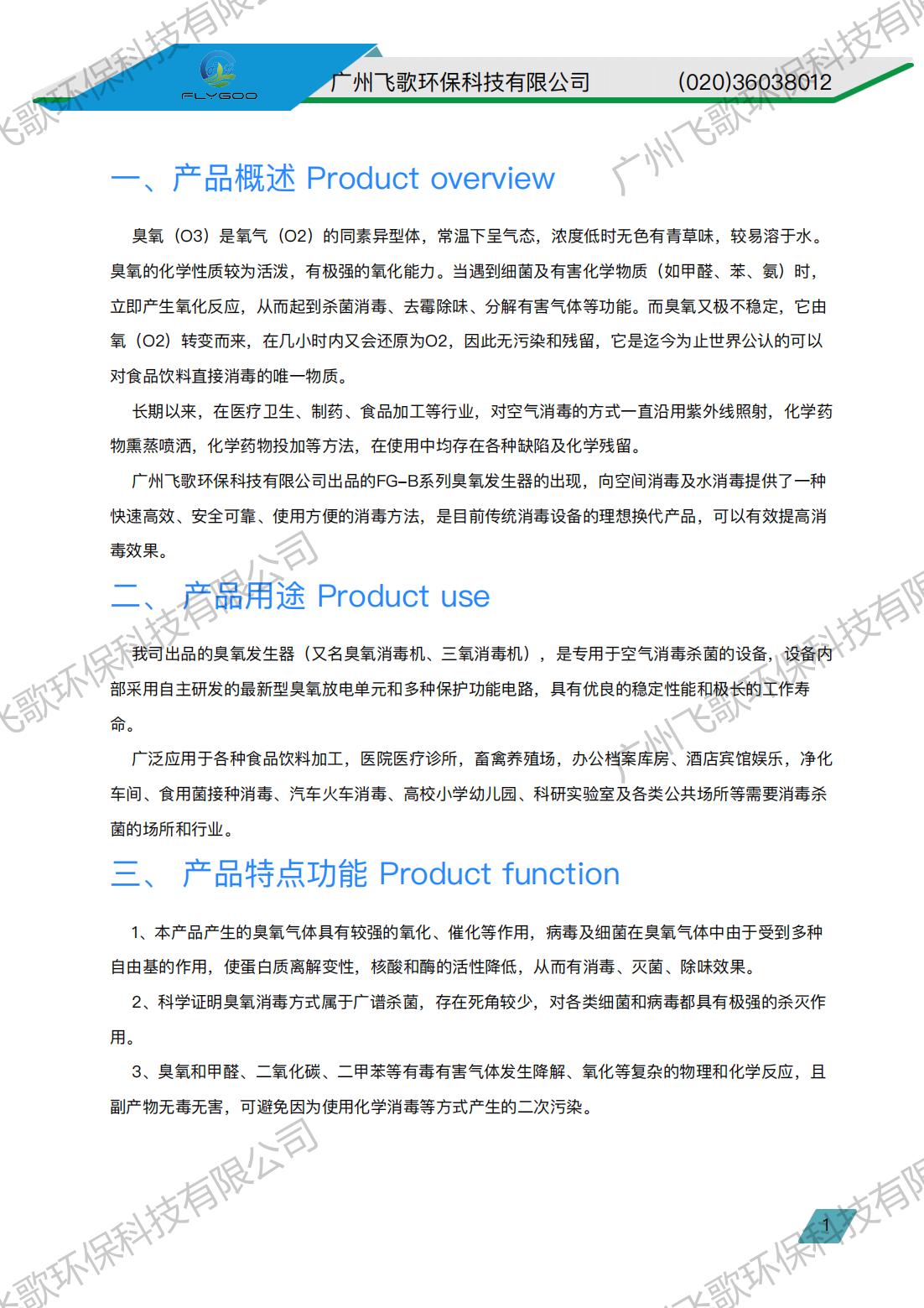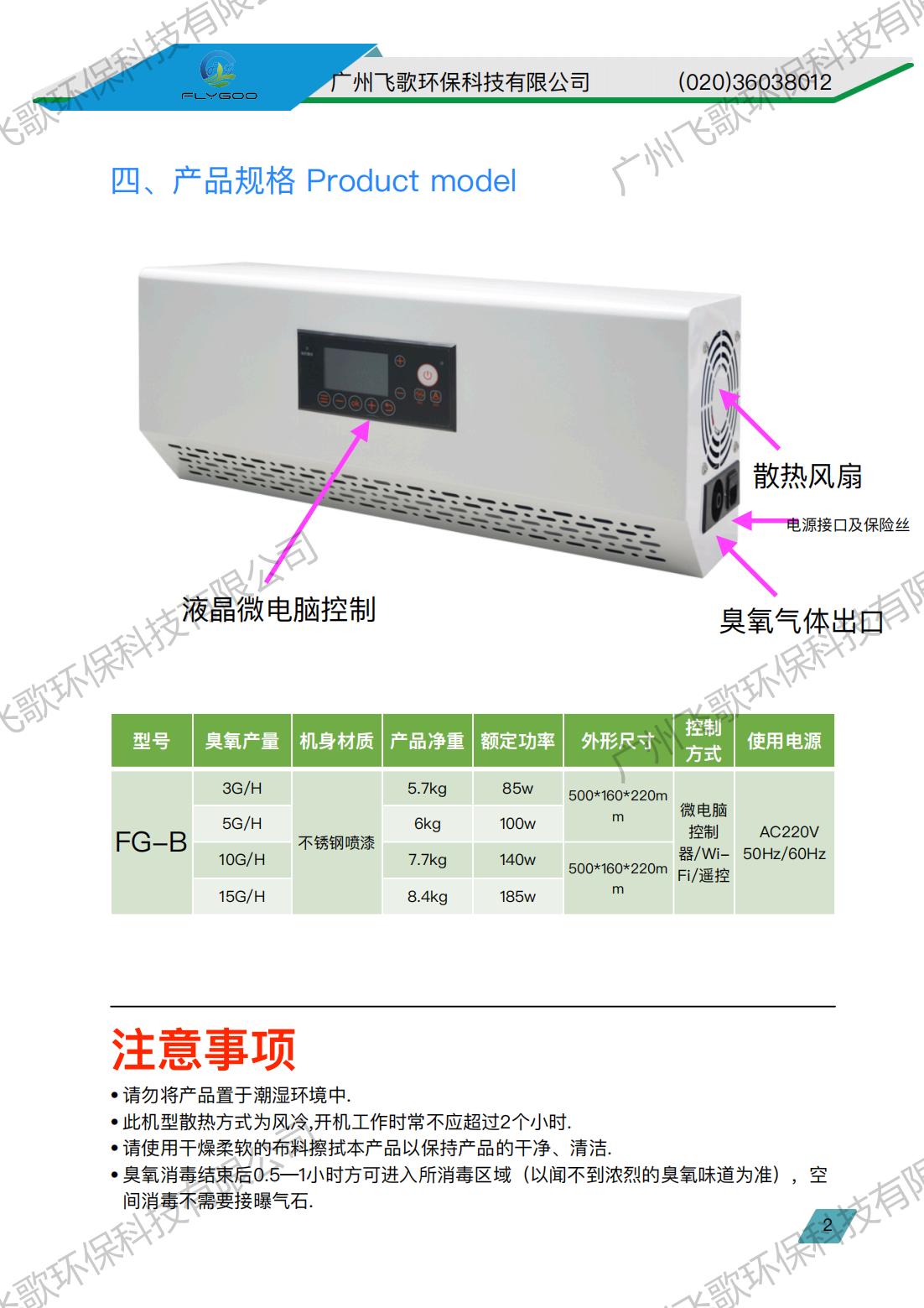 飛歌FG-B小壁掛式臭氧發(fā)生器產(chǎn)品使用說明書