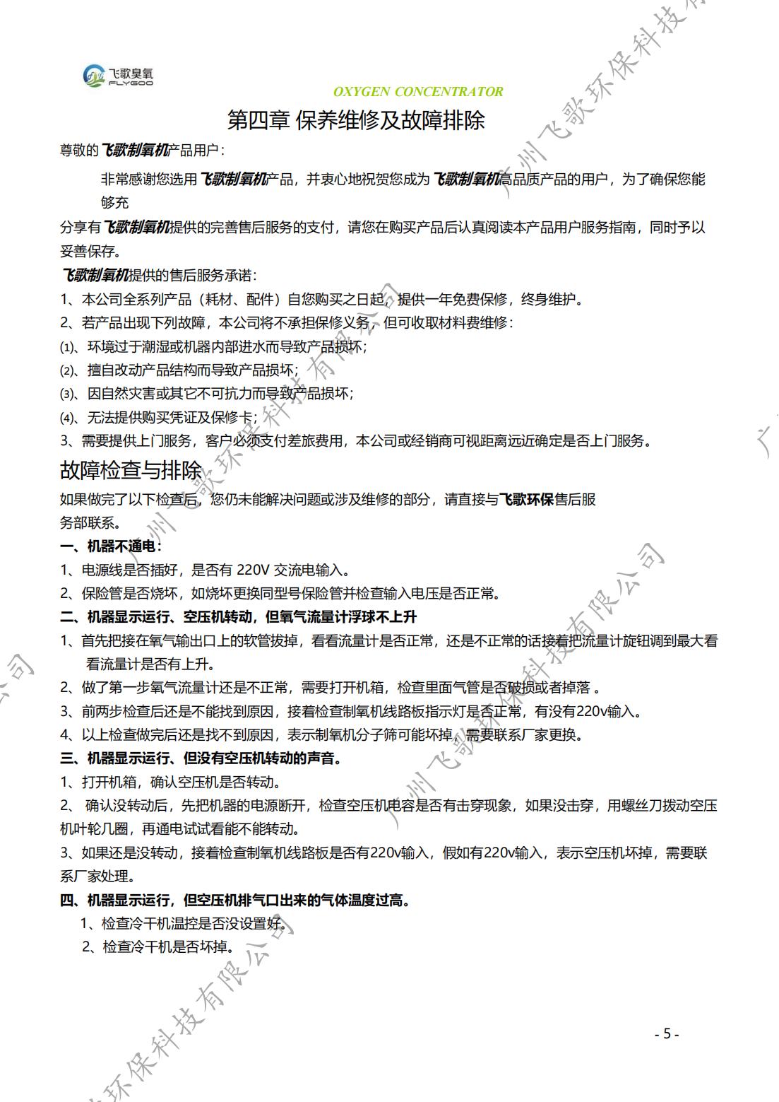 飛歌50-60L制氧機(jī)產(chǎn)品使用說(shuō)明書(帶冷風(fēng)機(jī))